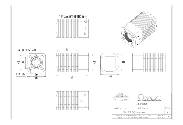 2.已安裝的分束立方(透鏡套筒安裝方式)