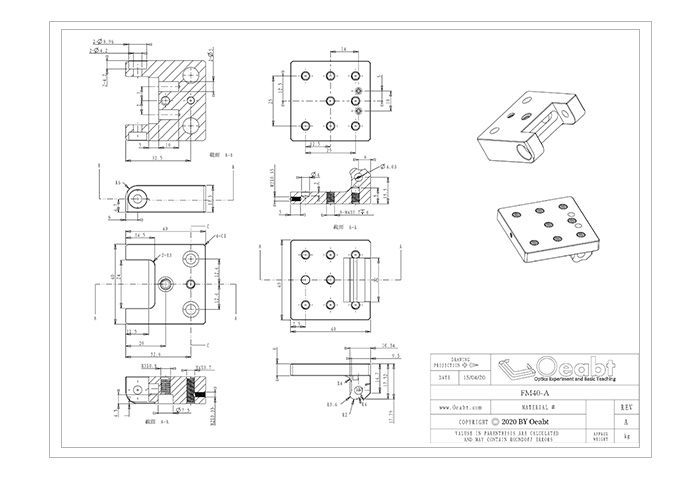 (1)臺面8個(gè)直徑M4螺紋孔,可轉(zhuǎn)接安裝不同鏡架;