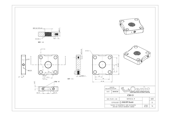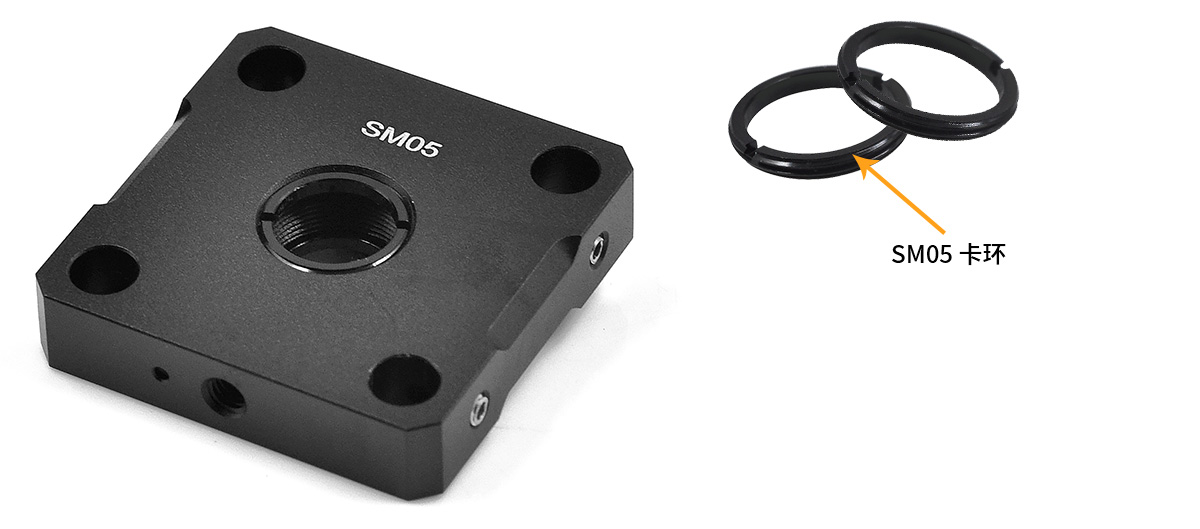 (1)CSJ-13螺紋籠板的中心有一個SM05 (0.535-40)螺紋孔,兼容?1/2英寸透鏡套管。中心螺紋孔也可以直接安裝最厚0.2英寸 (5mm)的?1/2英寸鏡片;(本產(chǎn)品附帶2個SM05卡環(huán),如需更多卡環(huán),請另外購買);