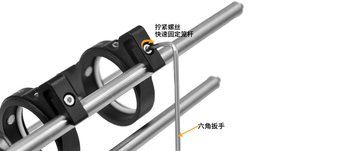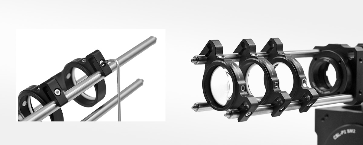 Oeabt的籠式系統(tǒng)提供不同的可用于籠式共軸系統(tǒng)的配件和轉(zhuǎn)接件,可通過安裝接桿或透鏡套管,可以將籠式系統(tǒng)集成到光學(xué)設(shè)備中去。