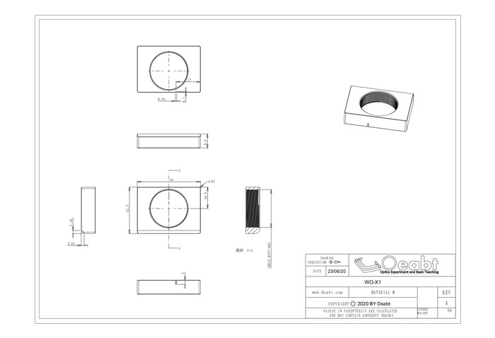 (3)主體面板自帶SM1 (1.035"-40)內(nèi)螺紋,用于兼容SM1系列透鏡套管。面板上4-40螺紋孔用于安裝M6籠桿(附帶8個(gè)4-40螺絲)。