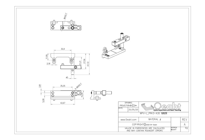 棱鏡安裝座是一個12.6mm*42.7mm的安裝平臺,可以安裝到兼容30mm籠式系統(tǒng)的旋轉調(diào)整架。平臺通過M3螺孔安裝,調(diào)節(jié)范圍為9.3mm,這樣放置在平臺上的光學元件就可以定位到組件上。
