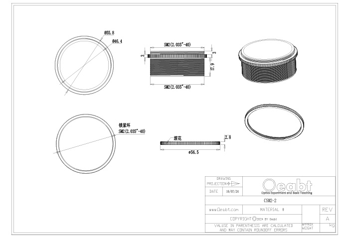 透鏡套管轉接件的外螺紋設計用于SM1或SM2內(nèi)螺紋組件之間的連接。