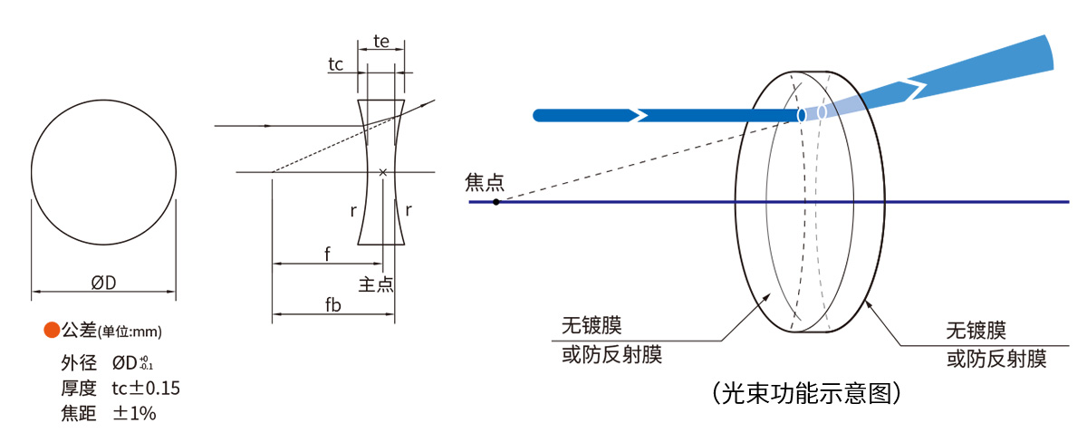 雙凹透鏡形狀簡單,形狀簡單,可以擴散準直激光,凹透鏡不能單獨聚集光,也不能成實像;和凸透鏡組合在一起,可以用于擴大光束直徑,擴大照明光的照明面積。