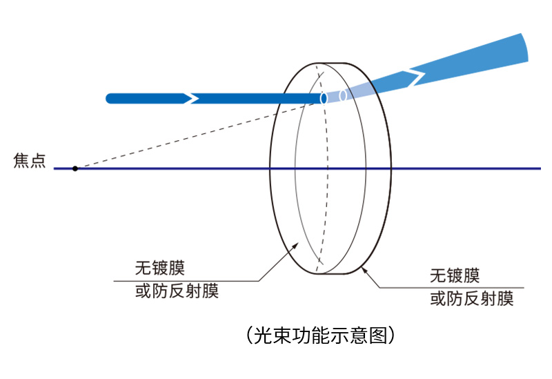 ? 使用高能量的脈沖激光時,由于凹面的反射光,在光路上聚積成焦點光斑后可能會出現(xiàn)閃光。用于脈沖激光時,請使用平凹透鏡;