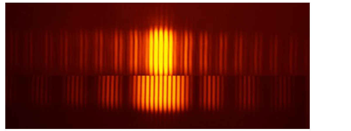 ? ? ??這個實驗的設(shè)置很簡單,一個點光源所發(fā)出的光在通過兩條狹縫后,被投射在 一個背景板上。當(dāng)通過狹縫的光到達背景板上時,所投射出的并不是兩條光帶,而是 許多明暗相間的條紋。