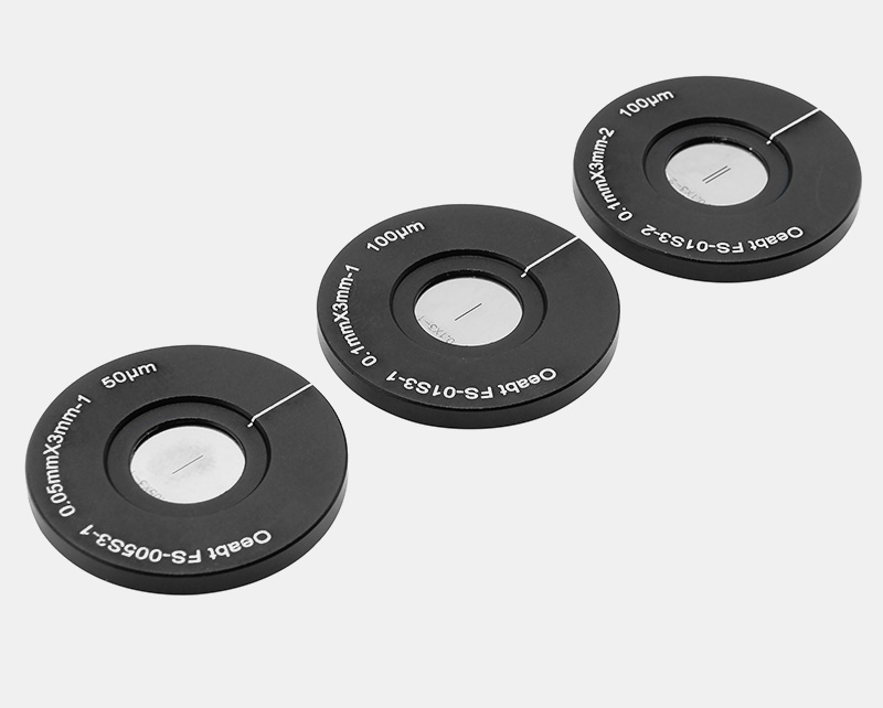 狹縫片是指由一對隔板在光通路上形成的縫隙,用來調(diào)節(jié)入射單色光的純度和強度,也直接影響分辯力。狹縫主要應(yīng)用于光譜儀器等。通過配合籠板安裝架、調(diào)整座、透鏡套筒以及顯微物鏡的組合使用,用來實現(xiàn)光路中的微小星點光源,激光光束濾波等光學(xué)實驗。