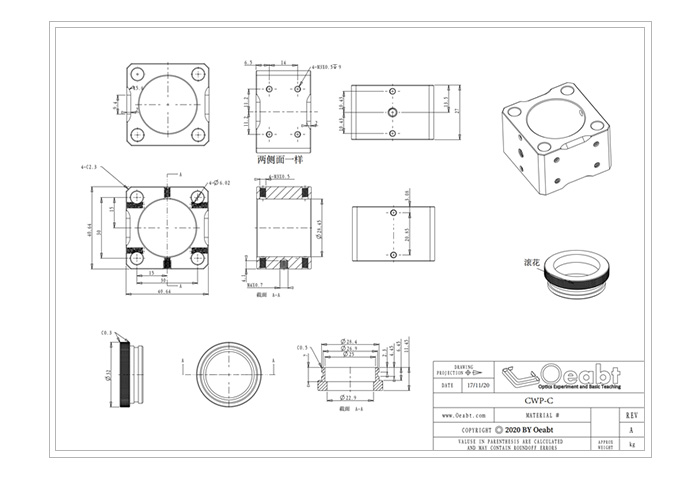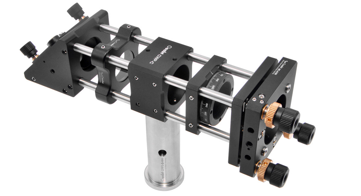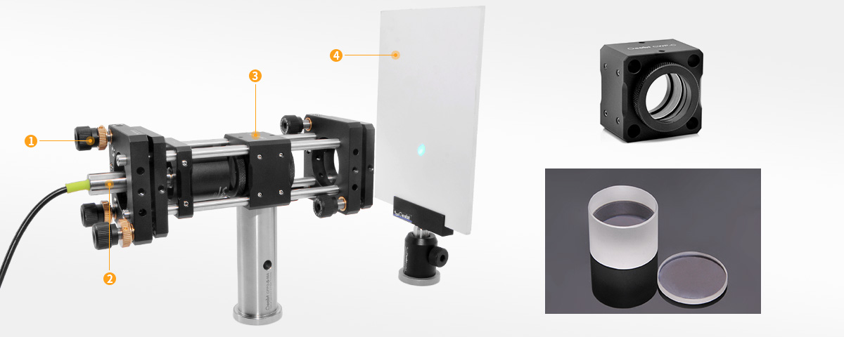 (4)可搭配圓楔形棱鏡使用, 即CWP-C 圓楔形棱鏡組合款。CWP-C是一個(gè)精密手動(dòng)光束轉(zhuǎn)向裝置,非常適合激光束操控應(yīng)用, 可使正入射棱鏡垂直表面的光束偏轉(zhuǎn)。該楔形棱鏡安裝座包含的一對(duì)圓楔形棱鏡,兼具360°的連續(xù)粗調(diào)范圍, 可用位于安裝座前后部的滾花圓環(huán)手動(dòng)粗調(diào)。調(diào)整校對(duì)光束完成后,通過(guò)上下兩端的緊定螺絲鎖定。