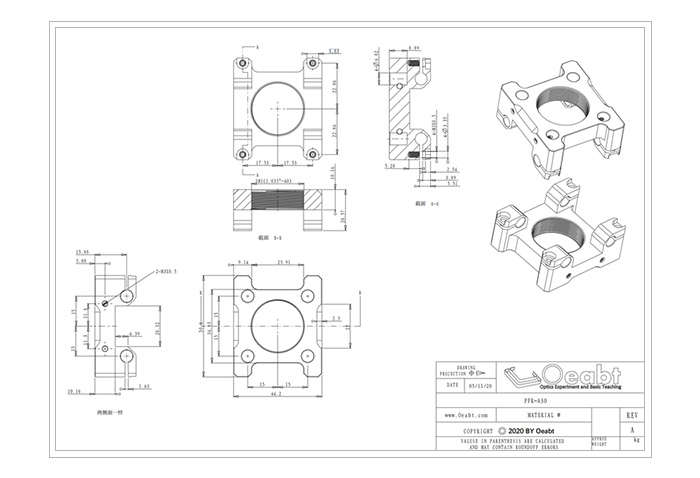 ? SM1(1.035"-40)內(nèi)螺紋,用于安裝光學(xué)元件或透鏡套筒;