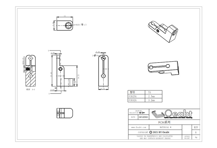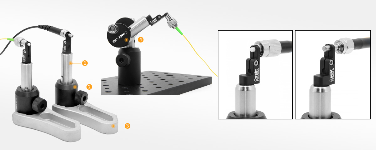 FCM系列插芯夾具體積小巧,兼容光纖接頭安裝在實驗裝置中。兼容?2.5mm或?3.2mm的插芯直徑和光纖接頭。