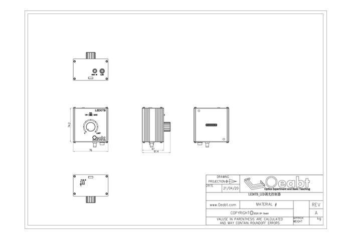 (3)LEDOTB控制器是對經(jīng)過準直的實驗LED光源,進行光強度調(diào)節(jié)的緊湊型控制器。能夠以最大700-1000mA電流驅動LED。用戶只需操作一個集成了開關功能的電位器旋鈕,即可對LED光源進行無級調(diào)光。本控制器支持連續(xù)恒流驅動模式(CW)和脈沖模式( PULSE 通過SMA 5V TTL信號輸入)。LEDOTB為您的CCD相機曝光輔助、數(shù)字顯微成像系統(tǒng)帶來穩(wěn)定可靠的光源支持。