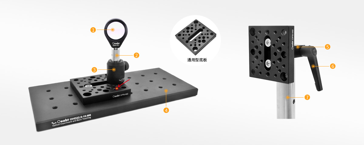 ? 通用底板提供在任何水平/垂直方向的光學(xué)平臺(tái)或面包板提供安裝孔;