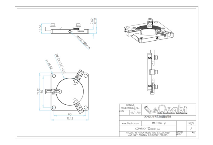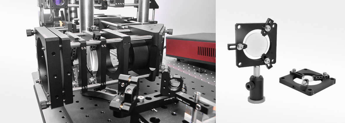 可調(diào)節(jié)透鏡架兼容我們的60mm籠式系統(tǒng),非常適用于一般地安裝不同尺寸的光學(xué)元件。夾臂除了可正反兩用,帶平坦側(cè)或V型側(cè)之外,還可對(duì)于形狀不尋常的光學(xué)元件進(jìn)行單獨(dú)調(diào)節(jié)。光學(xué)元件或物體可以手動(dòng)對(duì)準(zhǔn),接著擰緊夾臂中的三個(gè)手?jǐn)Q螺絲鎖定到位。