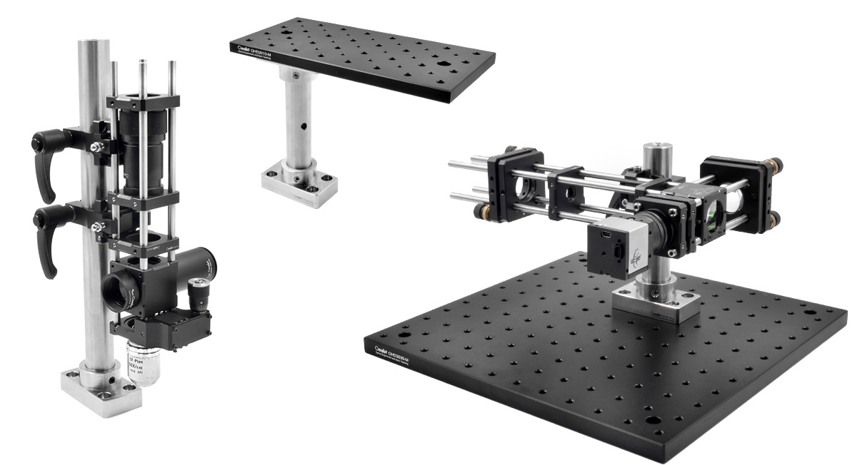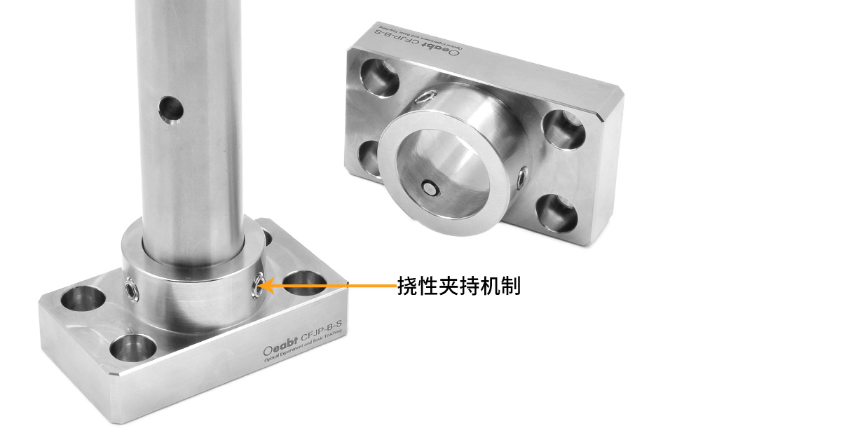 底座用于將CFJP-S系列 ?25mm的接桿安裝至底座,將其轉(zhuǎn)變成底座式接桿。使用側(cè)面的M6緊定螺絲驅(qū)動(dòng)撓性夾持機(jī)制,接桿可旋轉(zhuǎn)360°。在高度調(diào)節(jié)方面,中空的底座允許接桿與光學(xué)平臺(tái)表面直接接觸,將接桿的高度調(diào)節(jié)最大化。相較于叉式壓板,CFJP-B-S接桿底座與平臺(tái)的接觸面更大,能提供的穩(wěn)定性更佳。????