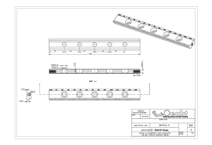 OOM-L150 |?規(guī)格: 150*18.1*7.0mm;?沉頭孔:?6.5mm*5處; 重量:36.5g;
