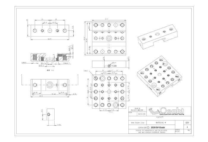 OOP-U63.5 |?規(guī)格: 63.5*63.5*12.5mm; 臺面螺紋:M6*15處,M4*8處,?6.5沉頭孔*3;量:88.9g;