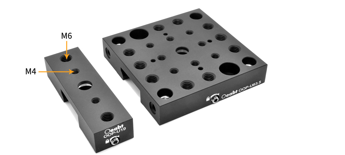 OOP-U19 |?規(guī)格: 19*63.5*12.5mm; 臺面螺紋:M6*2處,M4*2處,?6.5mm沉頭孔*1;重量:30.0g;