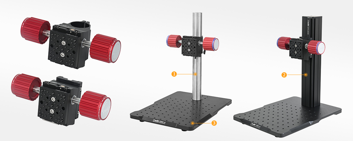 該預(yù)裝置套件由MCT-LM2升降調(diào)焦滑臺、CFP-A1.5 接桿連接件、OPS-MCT轉(zhuǎn)換板*2為組合件出售。應(yīng)用于?1.5英寸接桿,下拉提供多種預(yù)裝置安裝選項可購買。