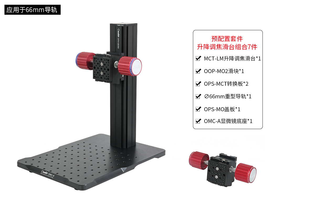 ? 組合件:MCT-LM2升降調(diào)焦滑臺、OOP-MO2滑塊、OPS-MCT轉(zhuǎn)換板*2;