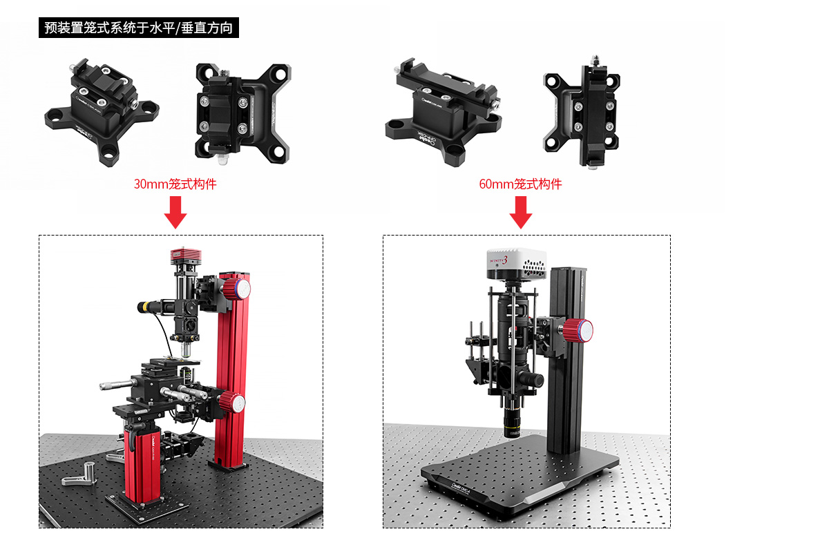 ? 組合件:CSK-A30 30mm夾持安裝架、CFP-CSK 籠式夾具轉(zhuǎn)換板;