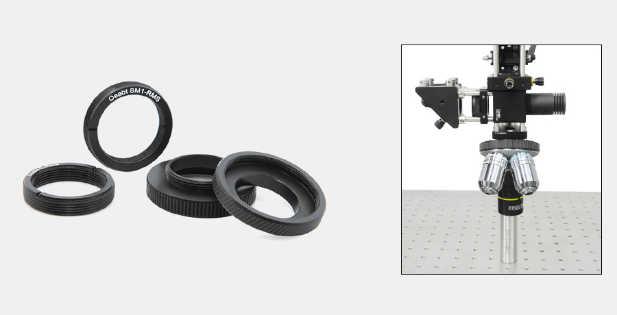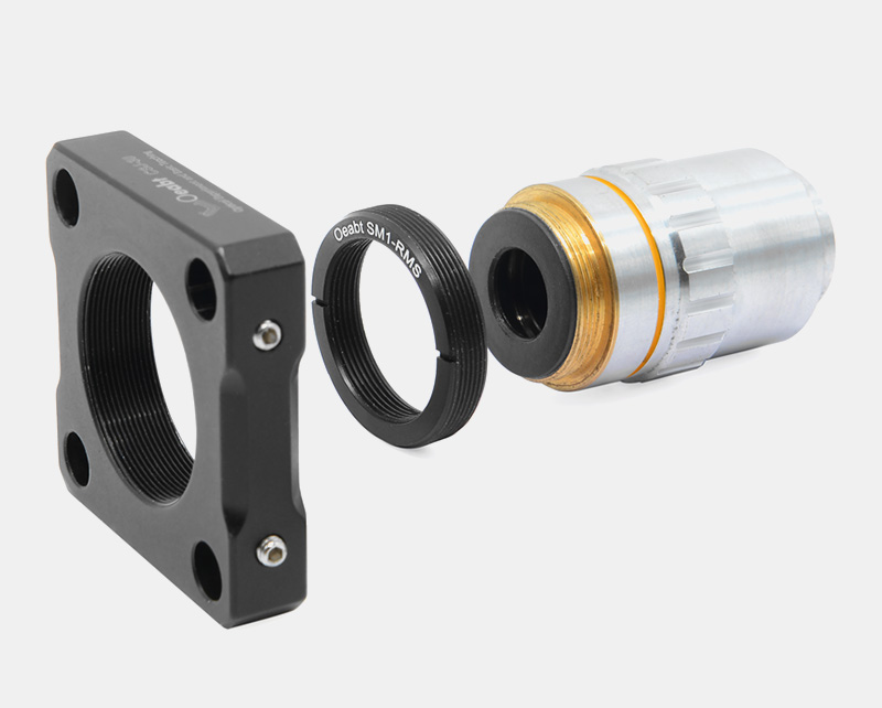 RMS螺紋結(jié)構(gòu)在光機(jī)系統(tǒng)中一般用于連接顯微物鏡,Oeabt提供多種RMS螺紋組件與其它標(biāo)準(zhǔn)螺紋集成,實現(xiàn)SM1、RMS、C-Mount、M25*0.75、M27*0.75之間不同螺紋的自由轉(zhuǎn)接。有內(nèi)螺紋或外螺紋的轉(zhuǎn)接件選擇。