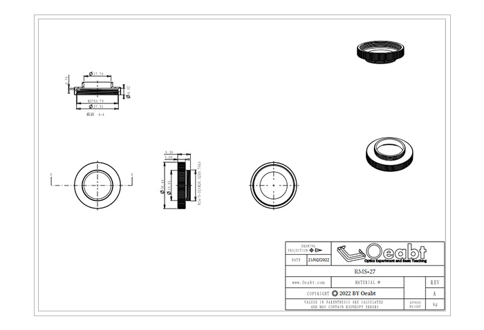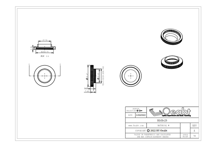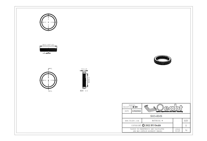 SM1-RMS轉(zhuǎn)接件是RMS(0.800”-36)外螺紋,M25*0.75內(nèi)螺紋。同時Oeabt提供多種RMS螺紋組件與其它標(biāo)準(zhǔn)螺紋集成,實現(xiàn)SM1、RMS、C-Mount、M25*0.75、M27*0.75之間不同螺紋的自由轉(zhuǎn)接。