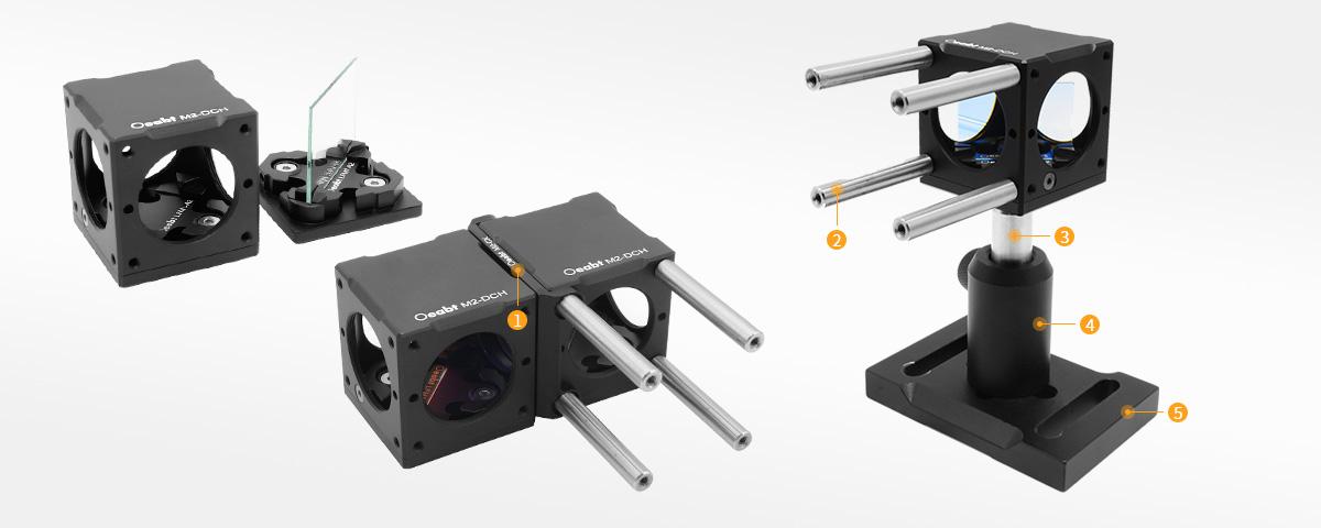 二向色濾光片立方體可以通過內(nèi)夾具安裝最厚為3mm的矩形元件,比如二向色反射鏡、分束鏡、反射鏡或偏振帶通濾光片。相較于M2-W系列籠式立方體降低了籠式組件之間的距離,尺寸更為緊湊。