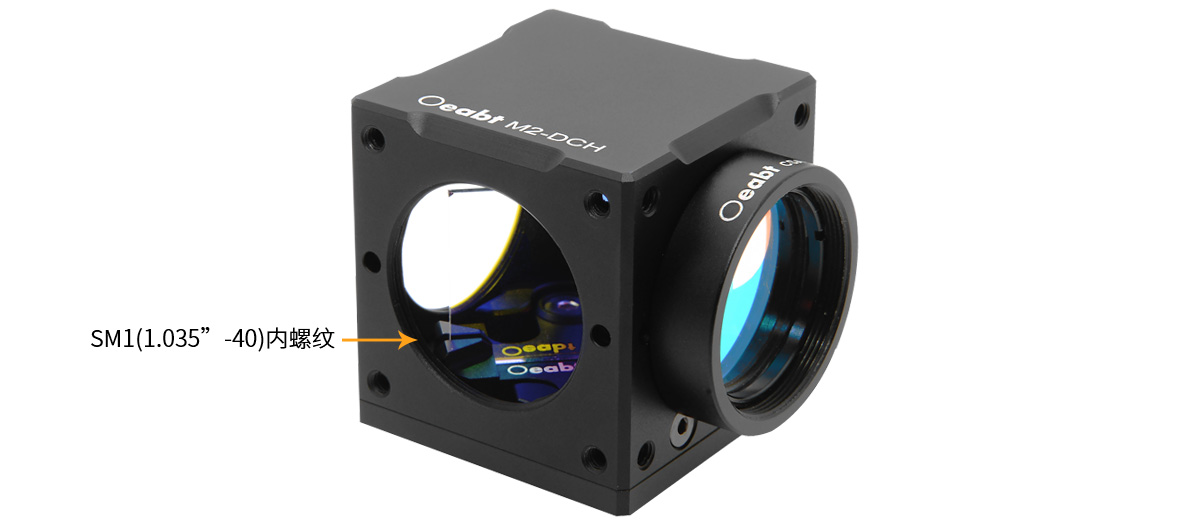 (3)立方體外殼具有4面SM1(1.035”-40)內(nèi)螺紋,兼容SM1套筒或其它組件。發(fā)射和激發(fā)濾光片也可安裝在短透鏡套筒中,連上SM1螺紋端口,集成用于搭建完整的熒光成像濾光裝置。