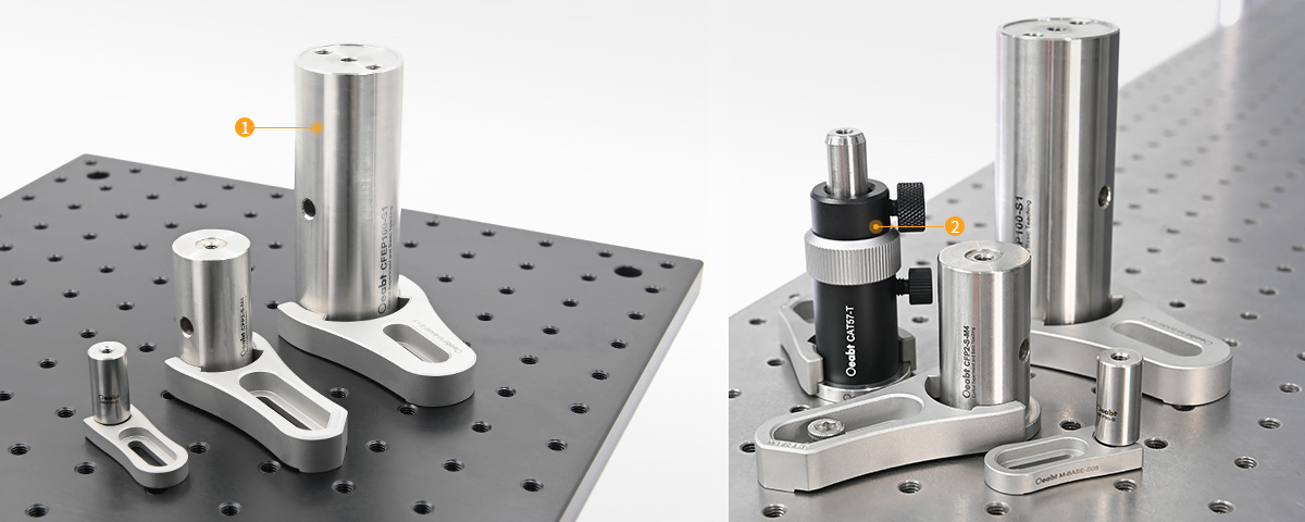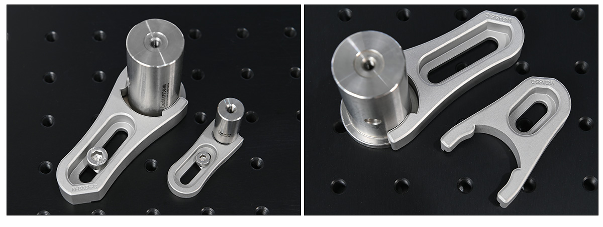 叉式壓塊與底座式接桿或接桿支架一起使用時,能夠提供良好的夾持力,與平臺形成三點接觸以提高穩(wěn)定性,且靈活性高。