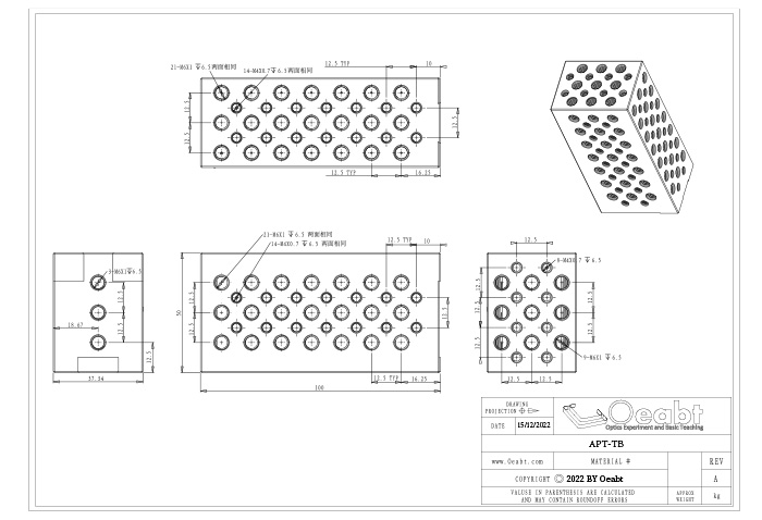 APT-TB100 磚形安裝塊具有水平和垂直安裝功能,五個外露的表面都加工有安裝孔陣列,適用于幾乎所有尺寸的安裝。能與已安裝光機(jī)械一起使用,實(shí)現(xiàn)光路抬升的搭建。也能用作較大結(jié)構(gòu)的支撐。