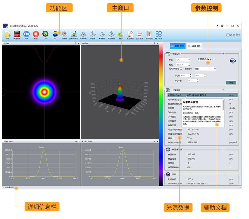 ? 配合基座光學BeamTester? ( 光策) 軟件系統(tǒng),可實現(xiàn)豐富的光束質量分析功能;