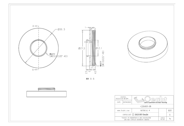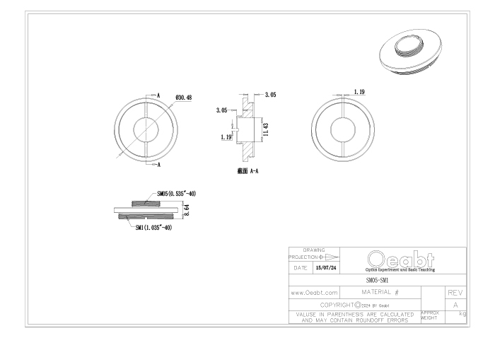該轉(zhuǎn)接件專門用于耦合SM05和SM1內(nèi)外螺紋,可以適配螺孔或平滑孔不同的光學(xué)組件,實(shí)現(xiàn)多種透鏡套筒連接或半英寸、1英寸組件對(duì)接的需求。以實(shí)現(xiàn)不同尺寸和規(guī)格間的連接和快速更換。