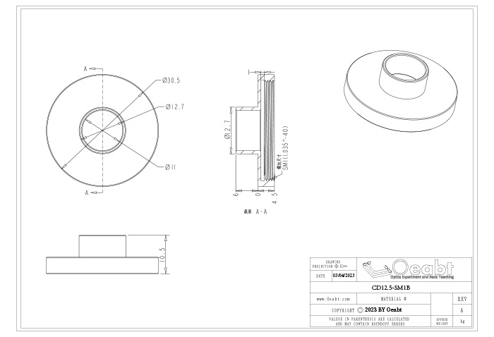 ? CD12.5-SM1B:一端?12.5mm的凸臺(tái)通孔,一端SM1內(nèi)螺紋;