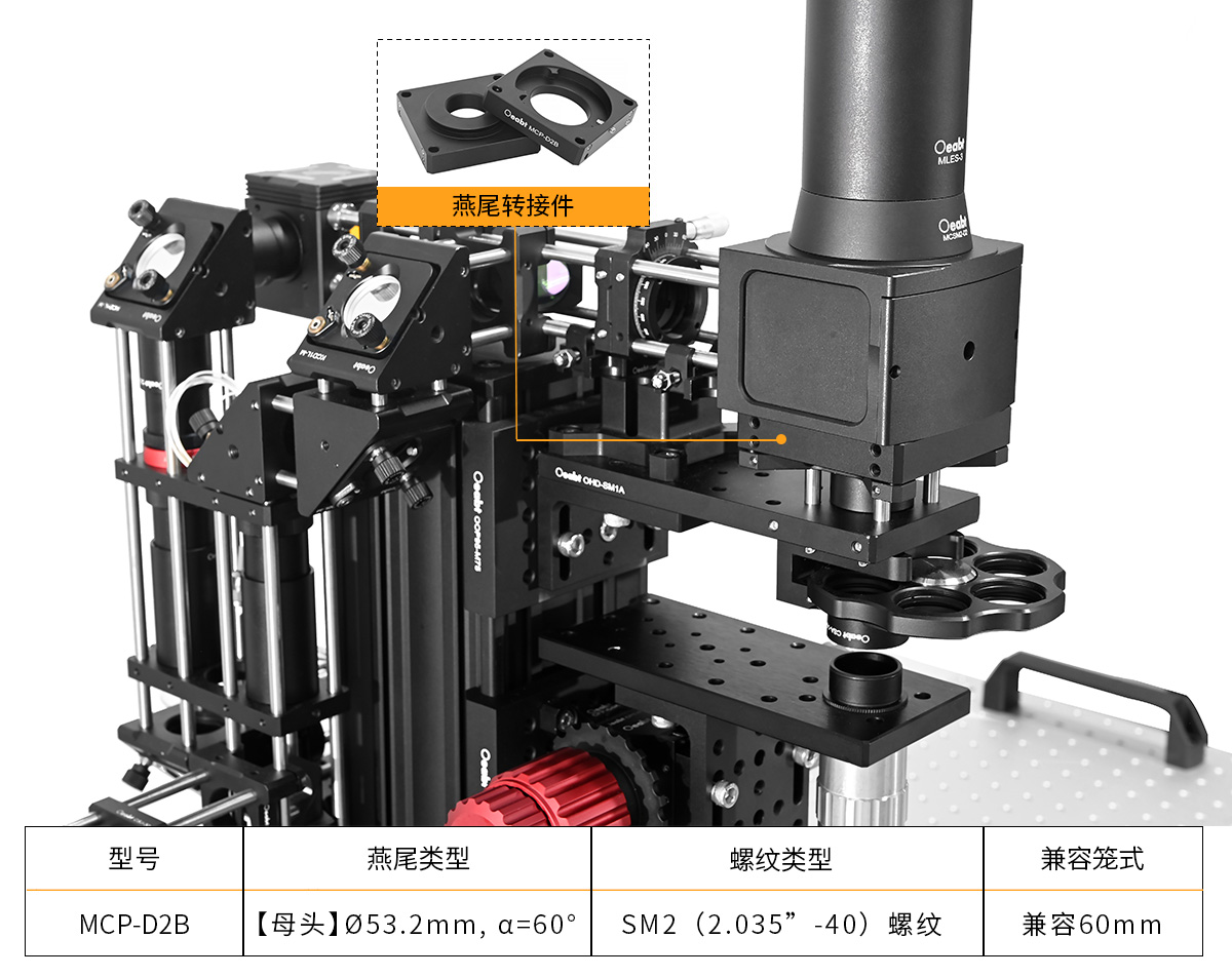 MCSM系列的燕尾轉(zhuǎn)接件使得顯微鏡平臺(tái)與SM1、SM2、30mm和60mm籠式系統(tǒng)集成,實(shí)現(xiàn)光學(xué)端口與螺紋端口的接合,非常適合自定義的顯微成像搭建。諸如寬場(chǎng)觀測(cè)、落射式照明、透射式照明和聚光鏡安裝機(jī)械件。