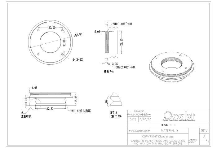 SM1(1.035”-40)內(nèi)螺紋,SM2(2.035”-40)外螺紋,4-40*4處(間距30*30mm) |
