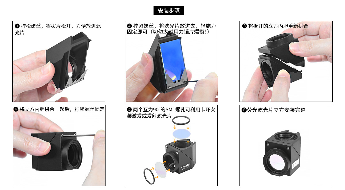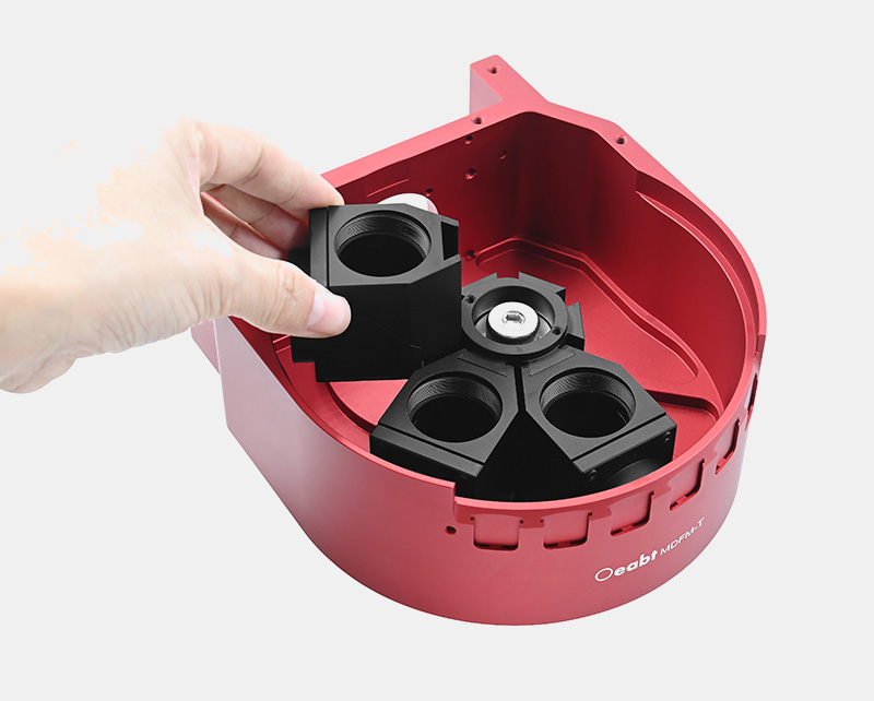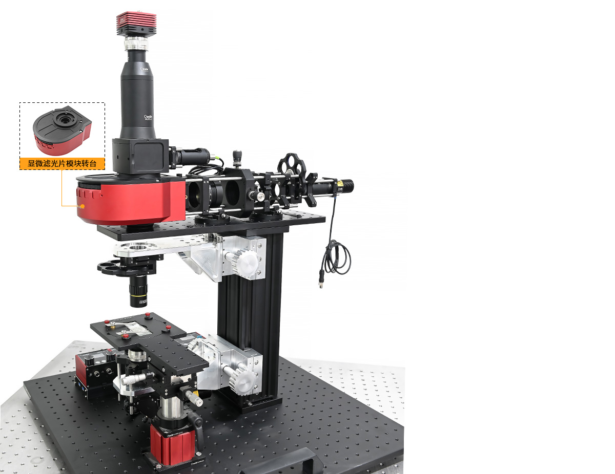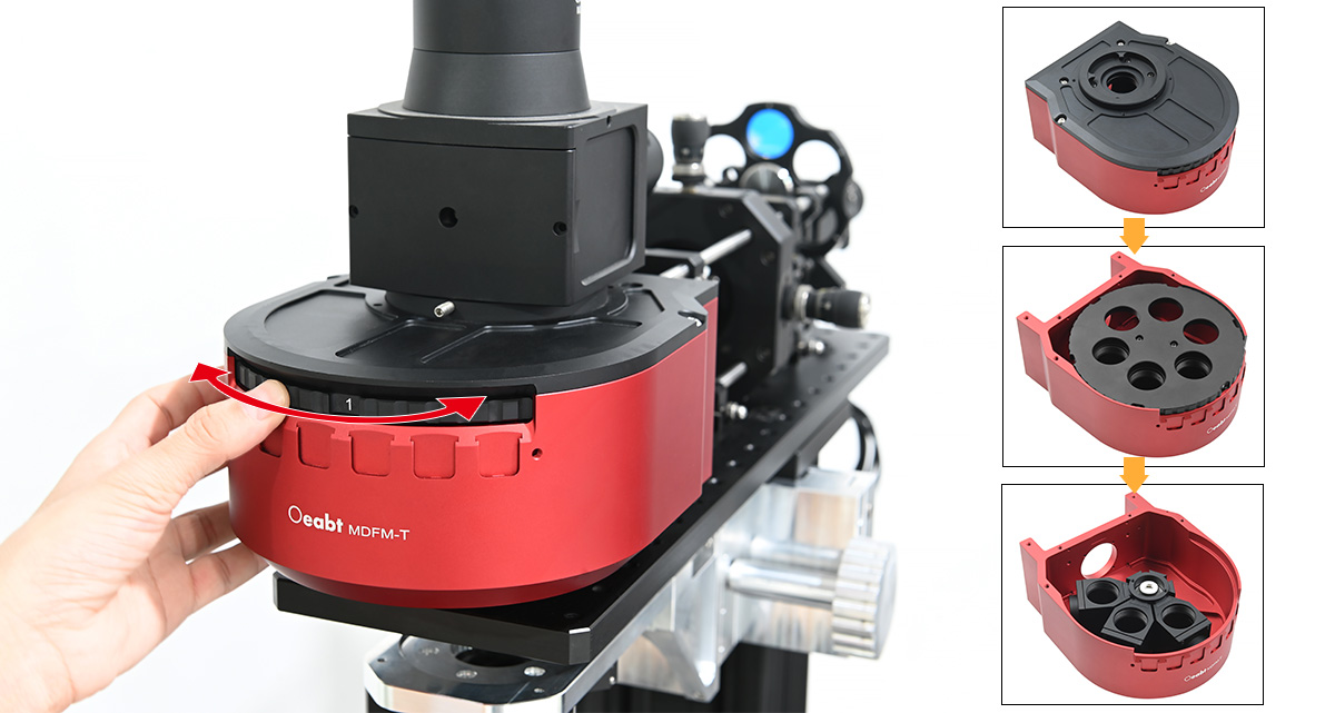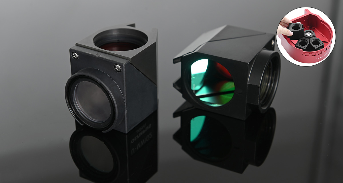 ? 可拆卸的轉(zhuǎn)臺(tái)內(nèi)置有3個(gè)濾光片立方組,最多容納6個(gè);