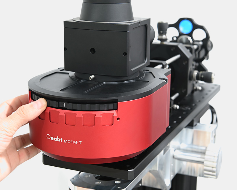MDFM-T轉(zhuǎn)臺(tái)有一個(gè)可拆卸的旋轉(zhuǎn)轉(zhuǎn)輪,內(nèi)置3個(gè)MDFM-MF2濾光片立方組。在顯微系統(tǒng)中,濾光片轉(zhuǎn)盤常用于調(diào)整樣本的熒光顯微鏡成像,以及通過不同的濾光片選擇合適的波長范圍來增強(qiáng)或改變觀察到的細(xì)胞結(jié)構(gòu)或標(biāo)記物。