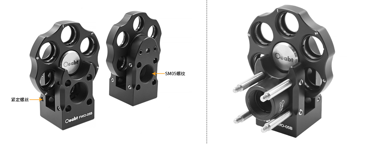 FWO-05B濾光片轉(zhuǎn)輪兼容16mm同軸系統(tǒng),具有六個帶SM05螺紋的濾光片架,可安裝?0.5英寸最厚4.5mm的光學(xué)元件。