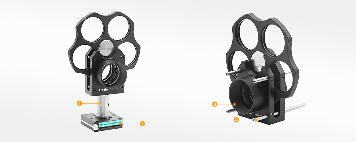 FWO-2B轉(zhuǎn)輪帶了5個(gè)SM2螺紋的濾光片架,可直接兼容60mm籠式共軸系統(tǒng)。