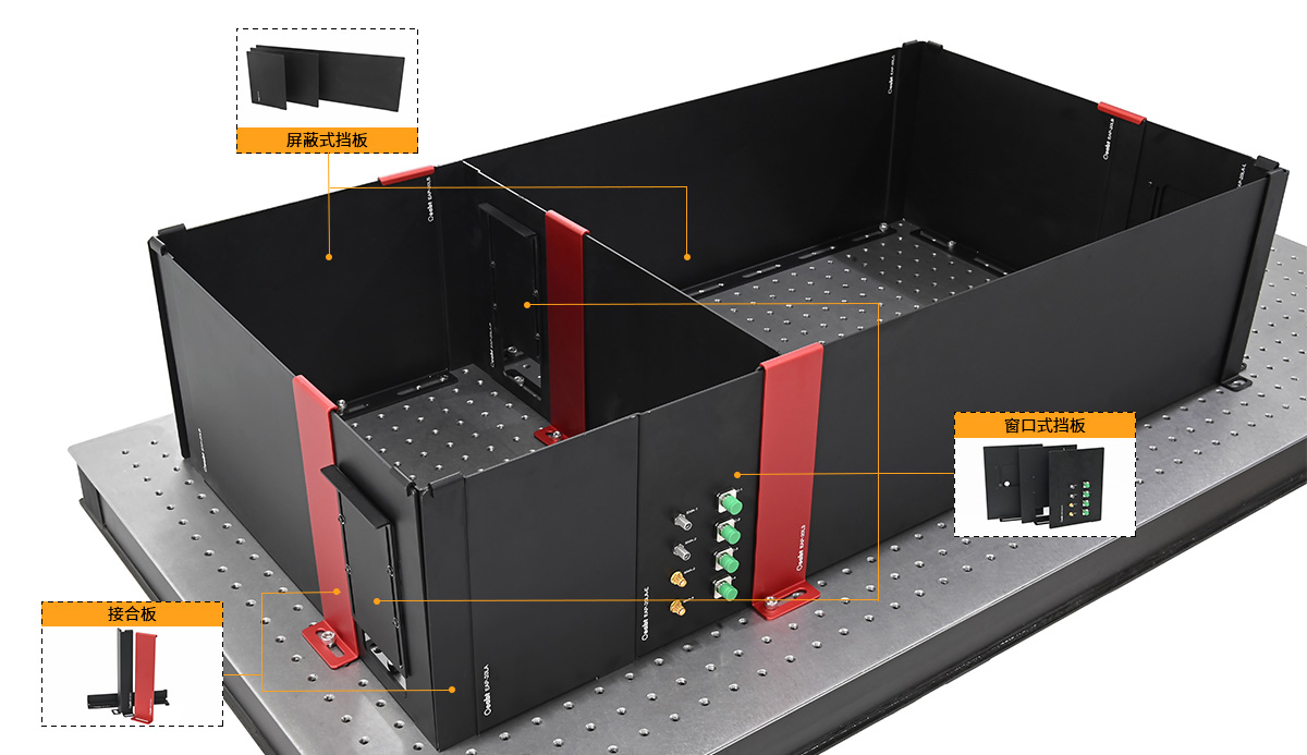 EAP系列組合式光學(xué)屏蔽罩提供模塊化的組件,為實驗裝置提供一個相對封閉的空間,防止激光漫射或外界干擾,提高實驗的精度和可控性。