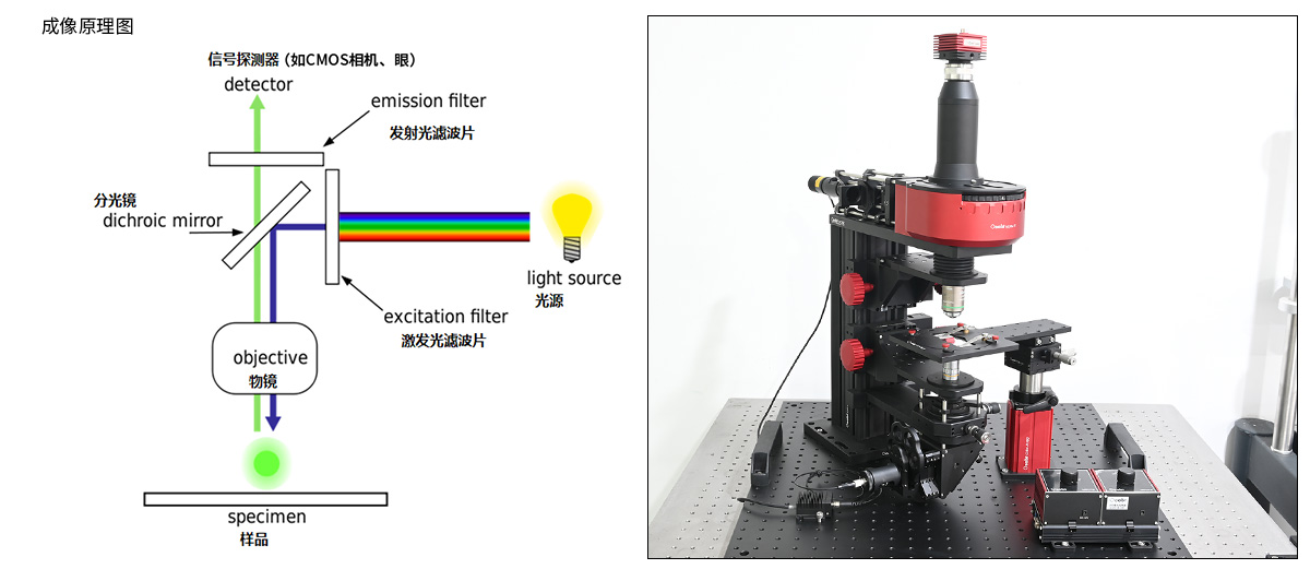 基于熒光現(xiàn)象,即某些物質(zhì)在吸收特定波長的光后會發(fā)射出不同波長的光。這種技術(shù)廣泛應(yīng)用于生物學(xué)研究中,用于研究細胞內(nèi)物質(zhì)的吸收運輸、化學(xué)物質(zhì)的分布及定位等。