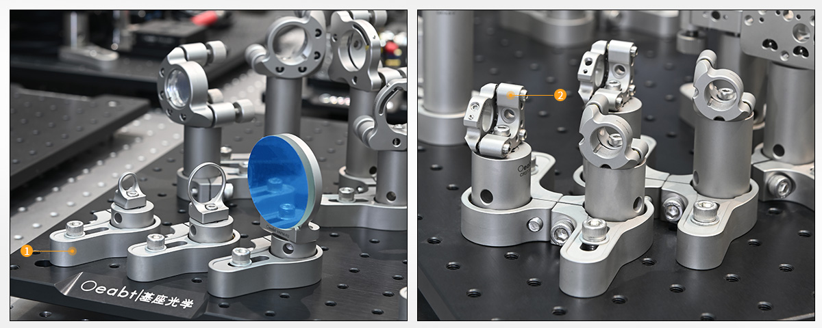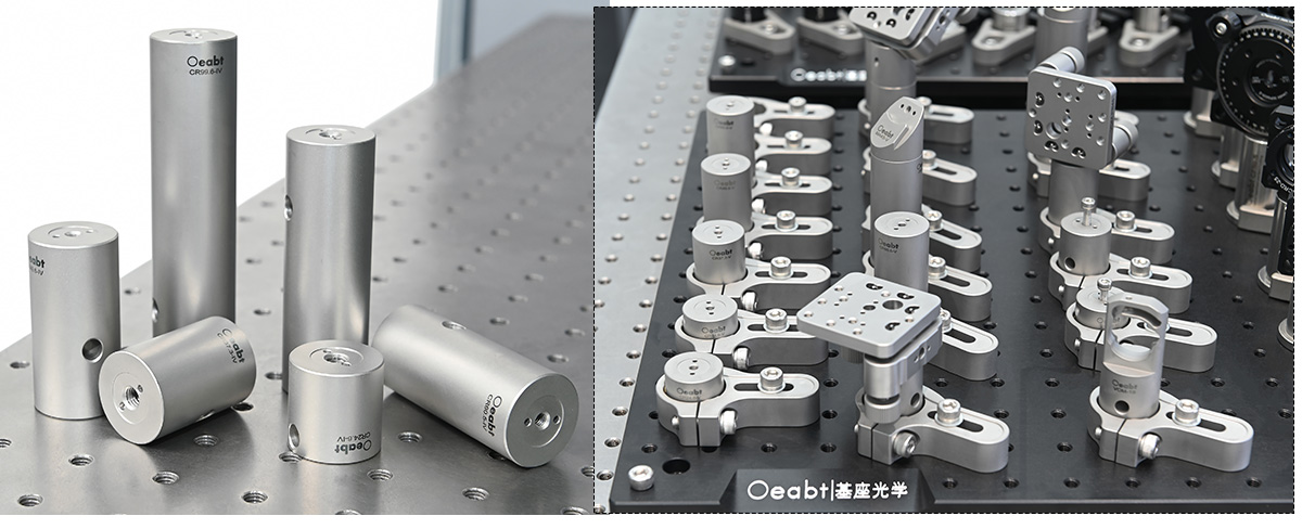 (2)每個(gè)接桿頂部均設(shè)有一個(gè)M4安裝孔,底部則有一個(gè)M6安裝孔。此外,每個(gè)中心螺孔兩側(cè)均設(shè)有用于對(duì)準(zhǔn)的孔,可配合定位銷(不包含)使用,在系統(tǒng)中利用定位銷固定接桿和配件可以防止它們由于振動(dòng)、移動(dòng)或意外接觸導(dǎo)致的松動(dòng)。