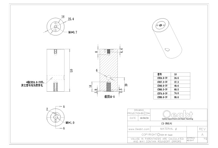 (1)CR-IV系列接桿采用經(jīng)過(guò)熱處理的不銹鋼制造,此工藝可消除溫度相關(guān)的內(nèi)部應(yīng)力,確保穩(wěn)定性。Oeabt所有低漂移系列光學(xué)調(diào)整架、壓塊和45°轉(zhuǎn)接件均采用此材料,具有相對(duì)較低的熱膨脹系數(shù)(CTE)。