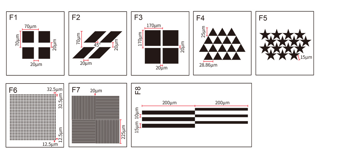 ? 掩模圖含傅立葉、巴比涅、晶格光柵、星形網(wǎng)格、三角形光柵、扇形星等圖形;