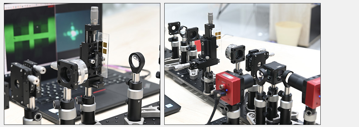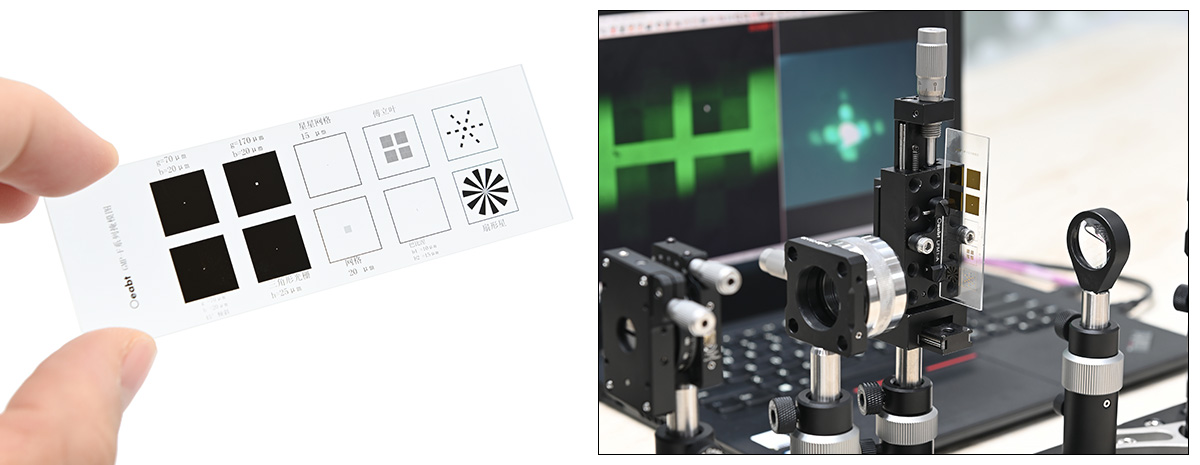 將不同的掩模、狹縫和光闌放置在分束鏡前傅里葉平面的光路中,這樣圖案的變化可以在觀察屏上看到。