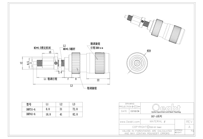 M6*0.5,粗調(diào)0.5mm/轉(zhuǎn) |