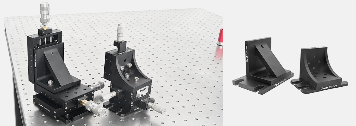 垂直組裝轉(zhuǎn)接板很適合需要XY配置的位移臺或XYZ多軸配置,兩種外觀尺寸的安裝板適用于大多數(shù)常規(guī)位移臺。