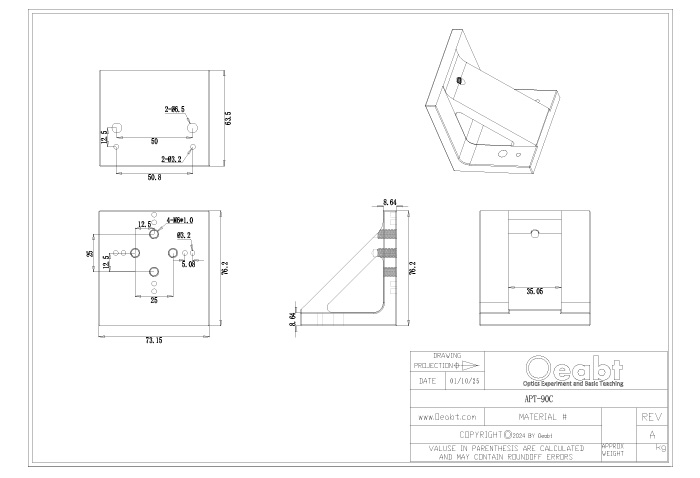 垂直組裝轉(zhuǎn)接板很適合需要XY配置的位移臺或XYZ多軸配置,兩種外觀尺寸的安裝板適用于大多數(shù)常規(guī)位移臺。?