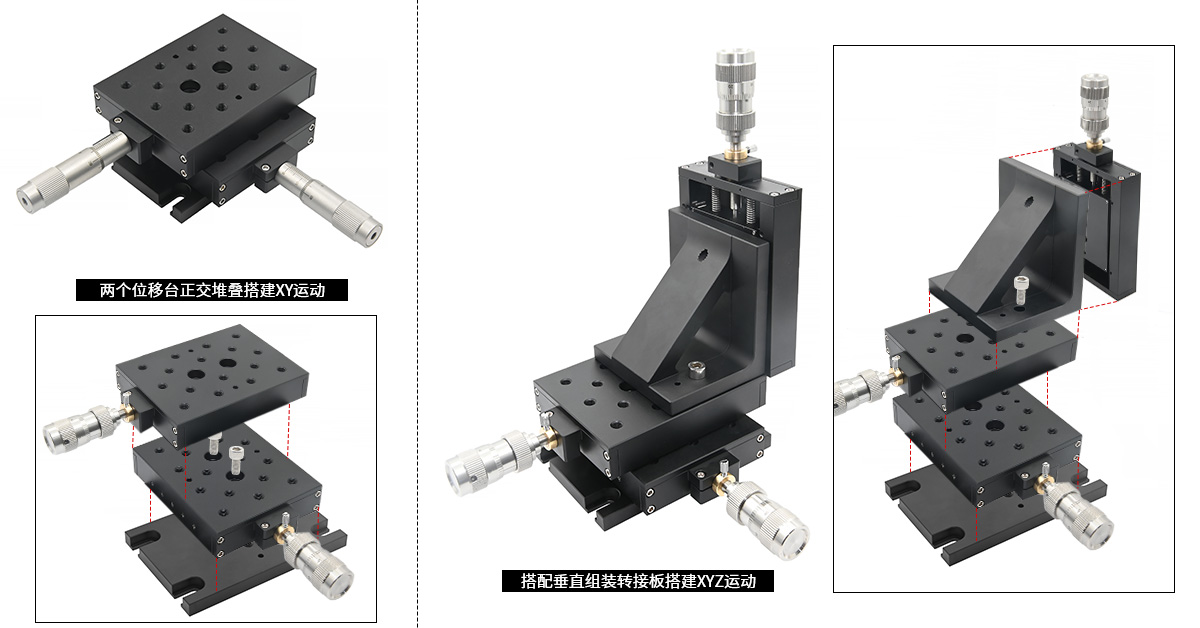 ? 模塊化設(shè)計便于將位移臺組合成XY和XYZ配置;