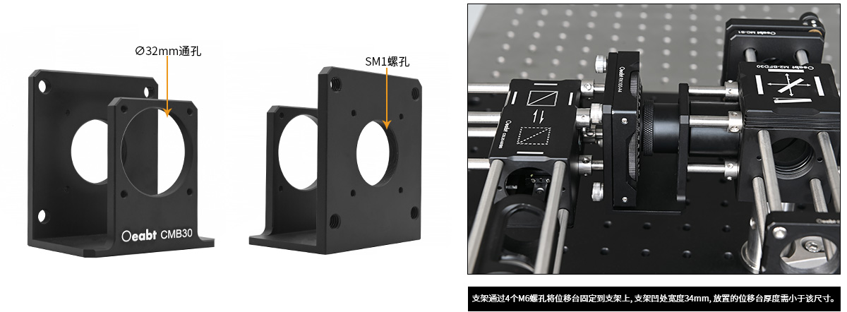 垂直支架可將安裝間距為50mm的位移臺(tái)豎直集成到30mm籠式系統(tǒng)中。